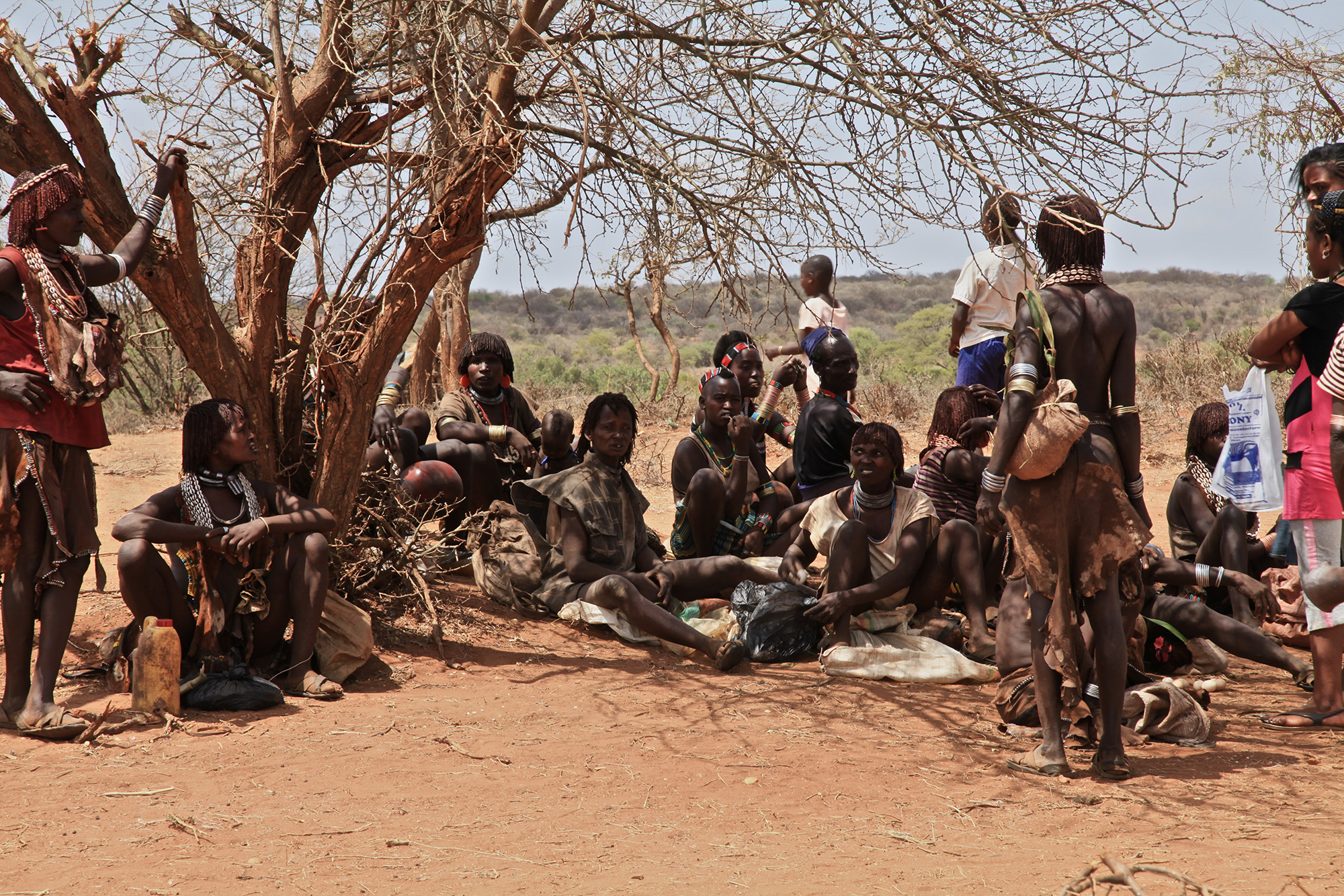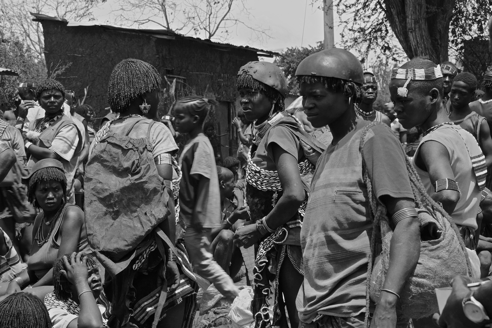 Hamer men love to show off their painted bodies. There is always a reason to do so. In the past it was enemies who killed them, today they are dangerous animals. Then they too decorate their hair with paste. “I shot an ostrich, a large, unpredictable animal”, says one market visitor. He points to his adorned head with the many earrings that indicate the number of his wives. He goes to Ami, points to the powder and haggles over the price with her. “For my women who stayed at home”, he says and laughs. Ami puts three handfuls of powder in a plastic bag. It will be enough until the next visit to the market.